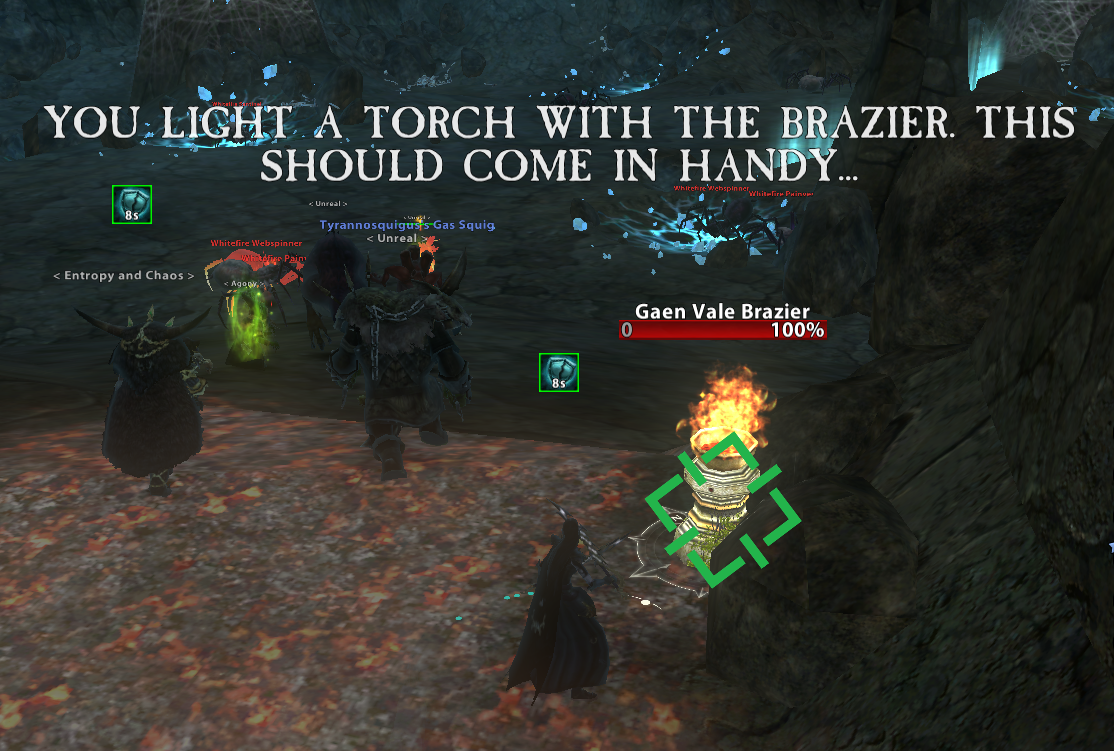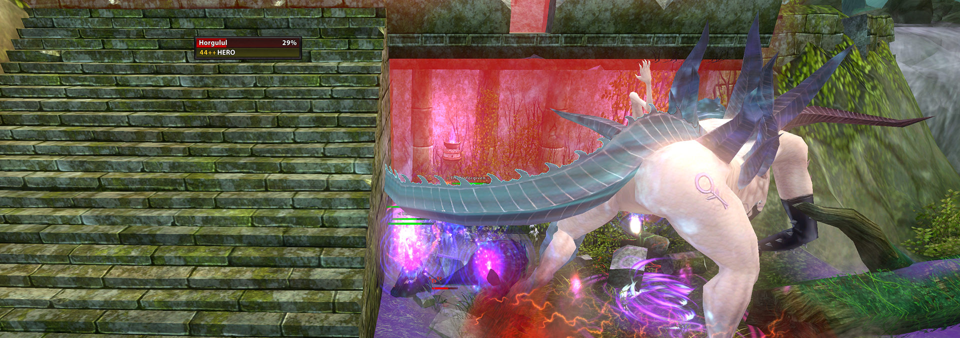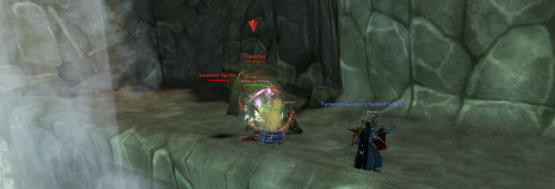 Instead of dropping down to the water after this wing, follow the path to the left and go in the cave. Kill all the sprites and Traechyr will appear. He is fairly easy until the very end as more and more adds spawn, keep AOE killing them until about 25% then ST the boss. At the last 5-10% you will have lots of strong adds so save your crowd control and morals for this last ST burst on the boss and you will defeat him easily enough.