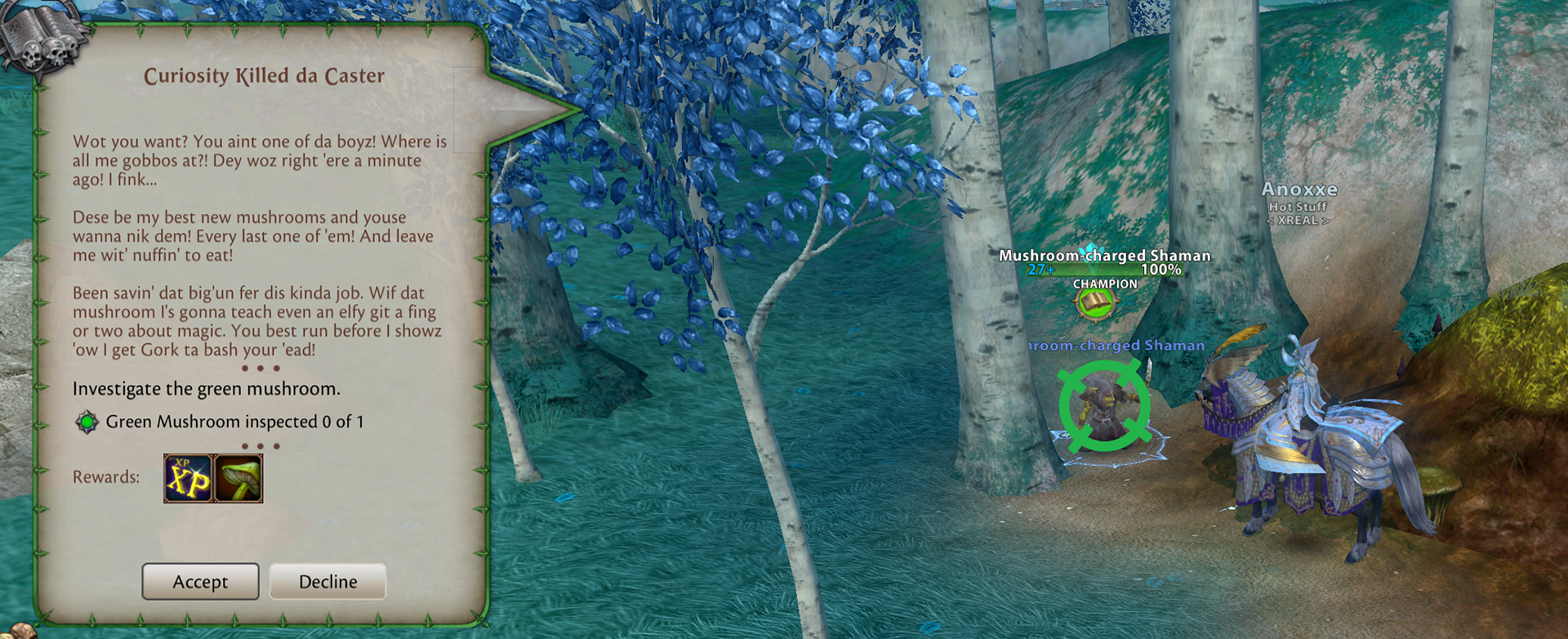 The next parts are marked on your map, get the Avelorn Eagletamers Head and place it on the spike. The eagletamer is surrounded by eagles and is easy to find. Then place the head and kill the normal mob The Forest Stalker then head back to Chapter 11 to hand in and get the item and the quest NPC is the merchant to get the upgraded item.