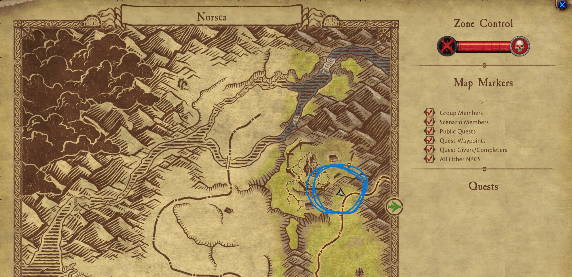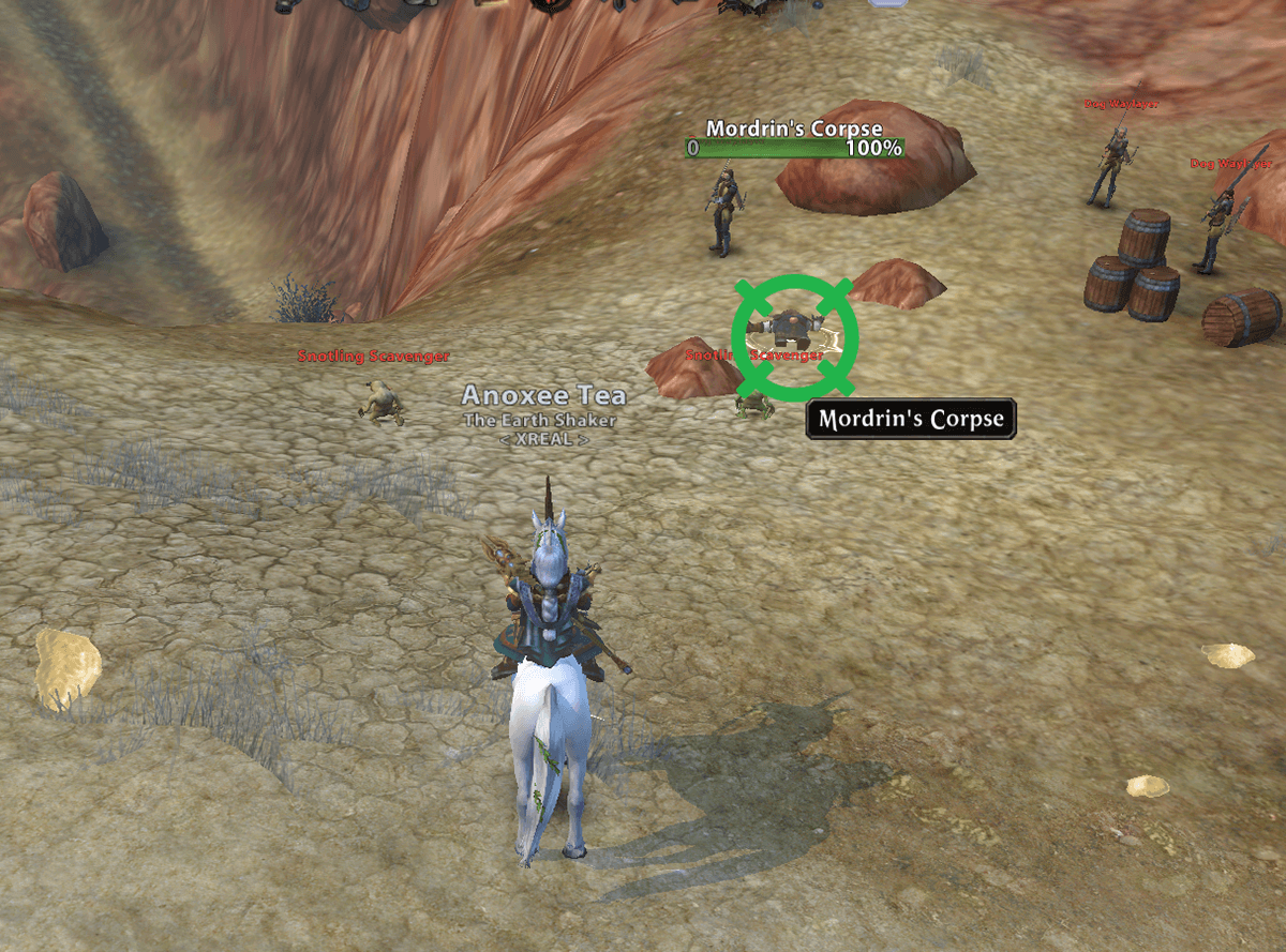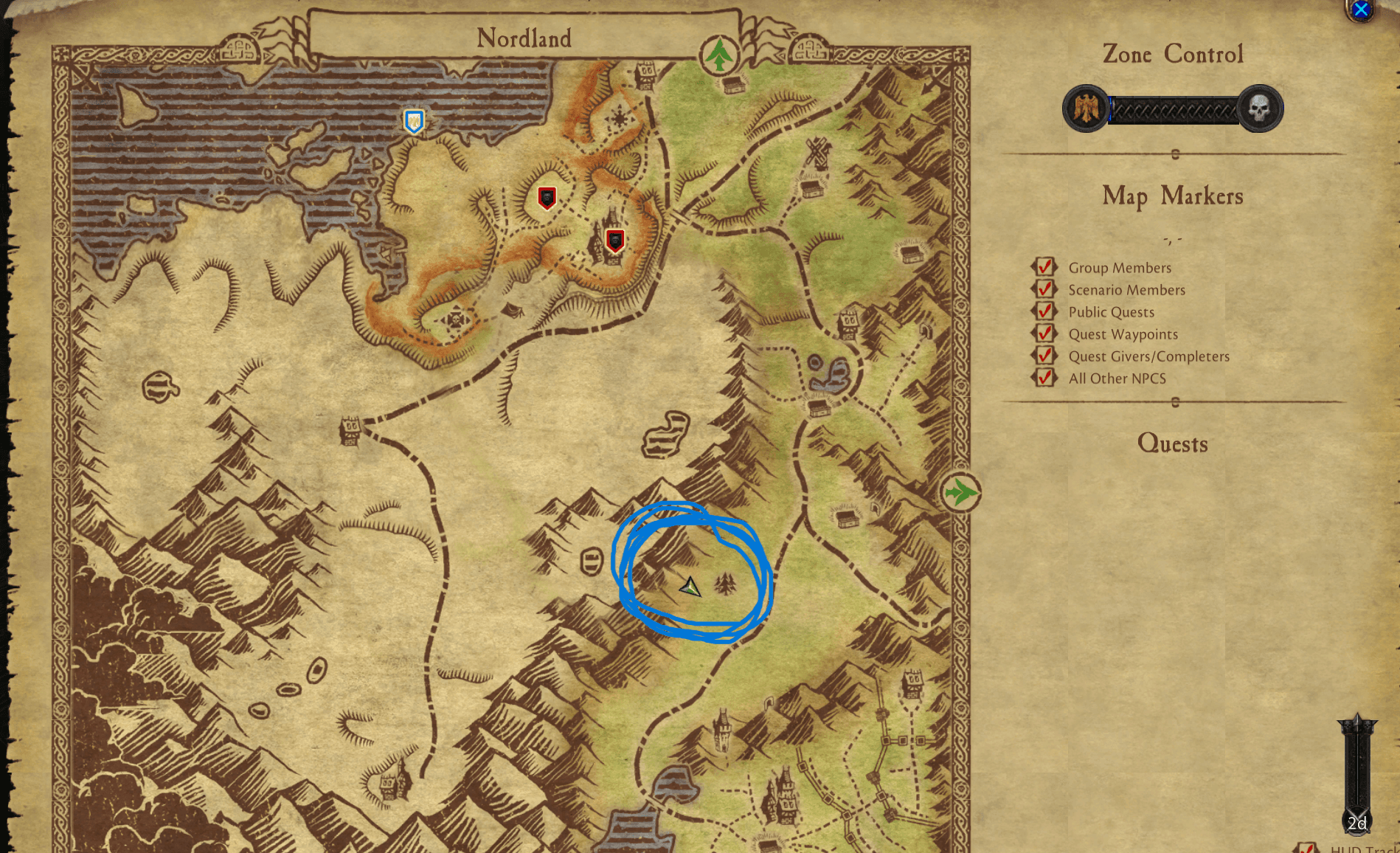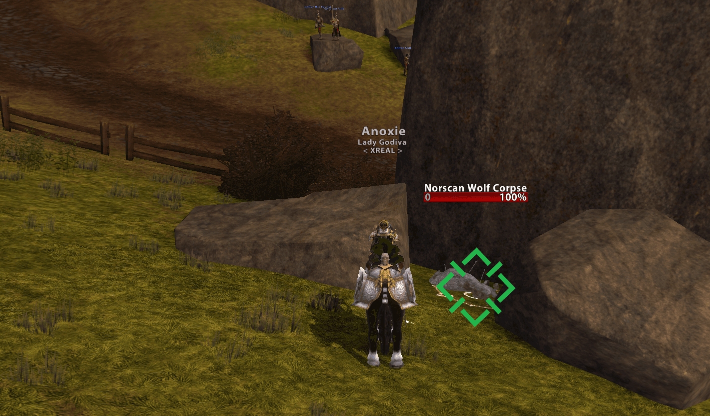 Click on the Norscan Wolf Corpse in between the rocks on the north side of the large rock, then click the dead wolf again to complete the quest.