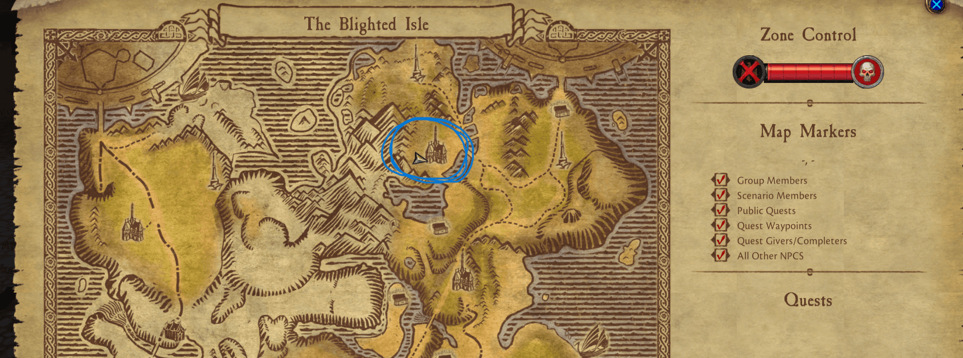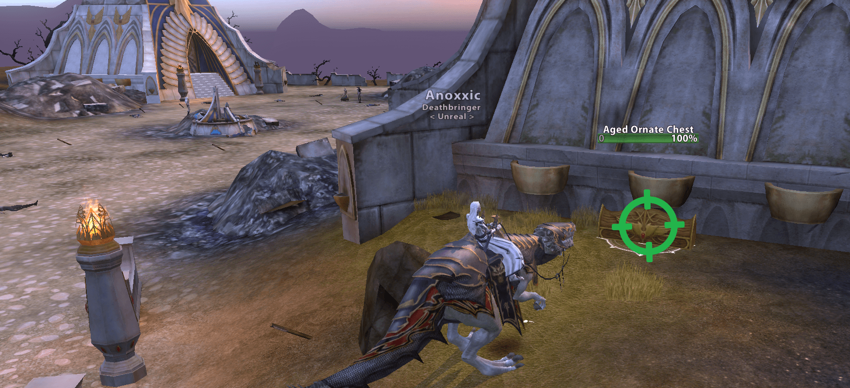 Do the /stuck command twice while RVR flagged to take you back to the Dark Elf spawn. Click on the Aged Ornate Chest on the outside of one of the buildings.