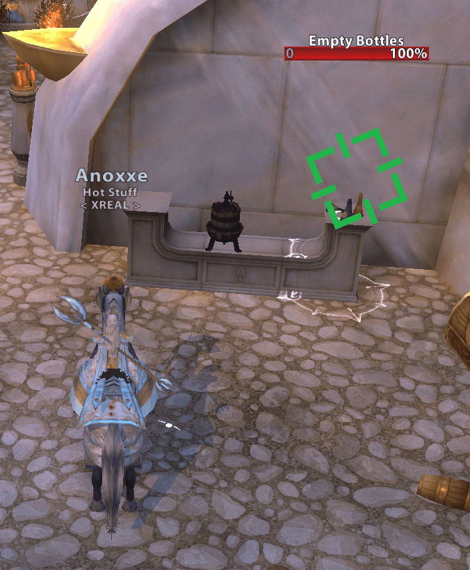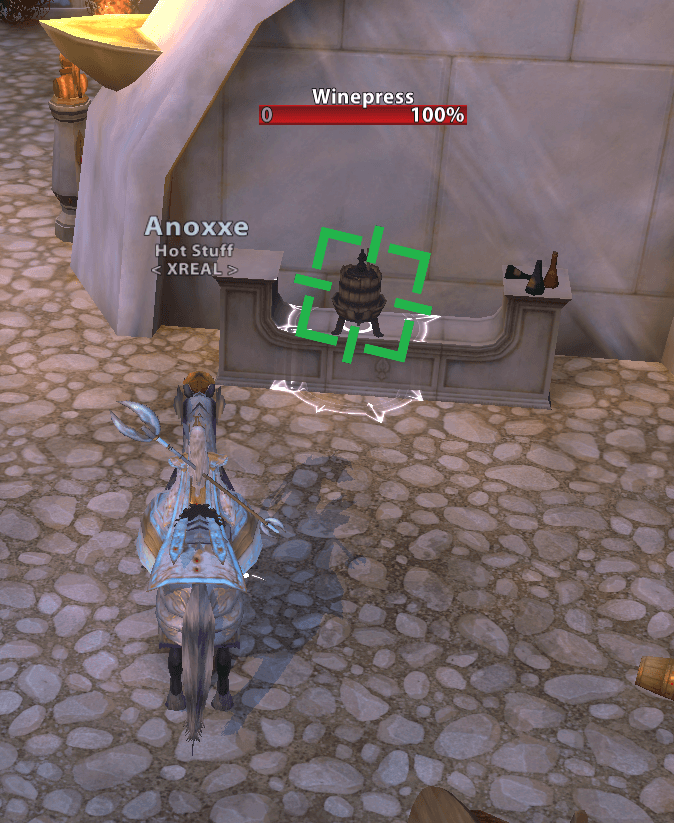 Do the /stuck command twice while RVR flagged to port to the elf start. Run through the woods to the back building. Click on the Winepress located on a bench by, then on the empty bottles to the right and then the Winepress again to complete the quest.