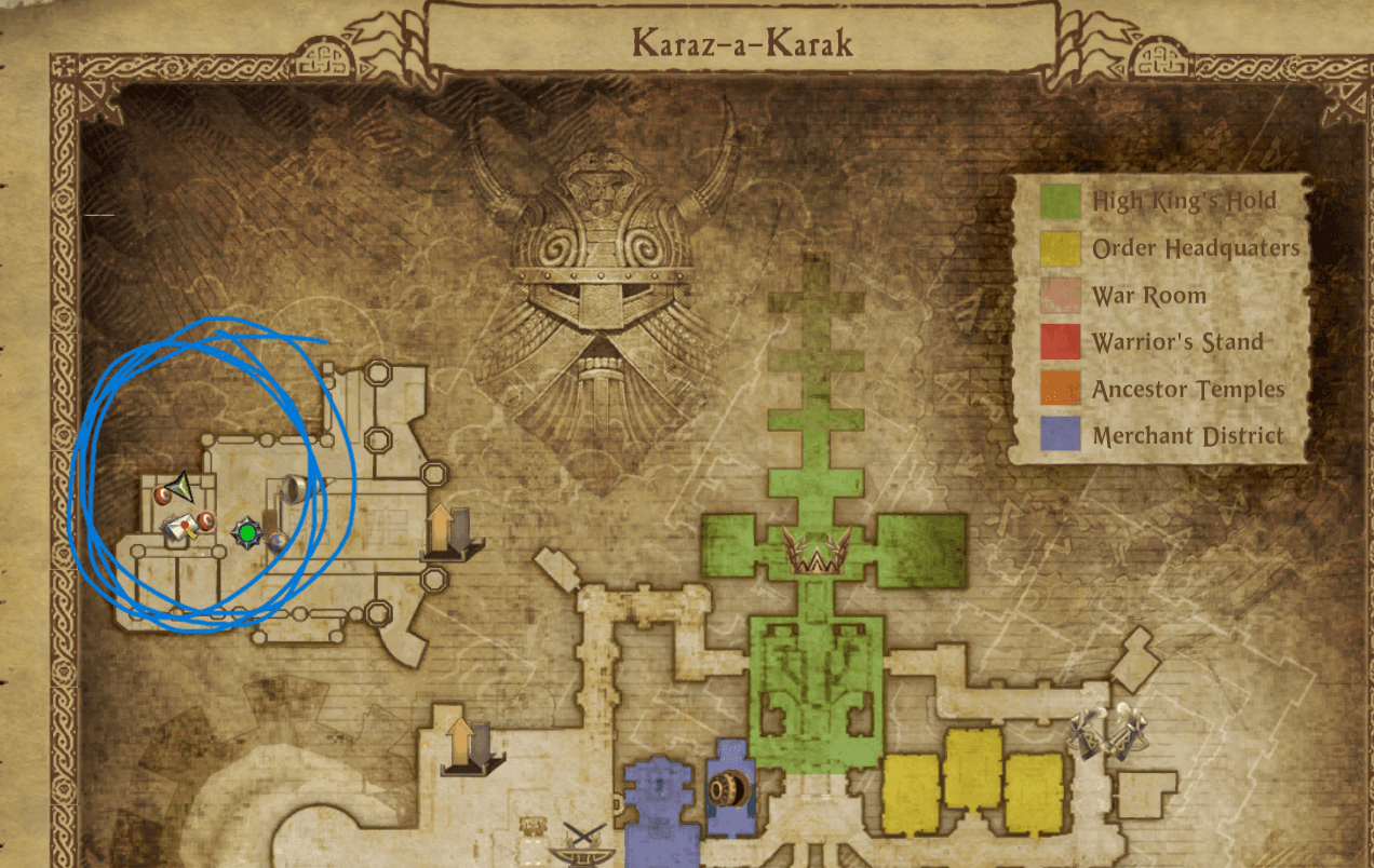 Go to Karak Eight Peaks (K8P) WAAAGH! Room - you can also go via The Viper Pit in The Inevitable City (IC) and click chaos portal to port to the WAAAGH! Room in K8P. Take the portal to the Flight Master.
