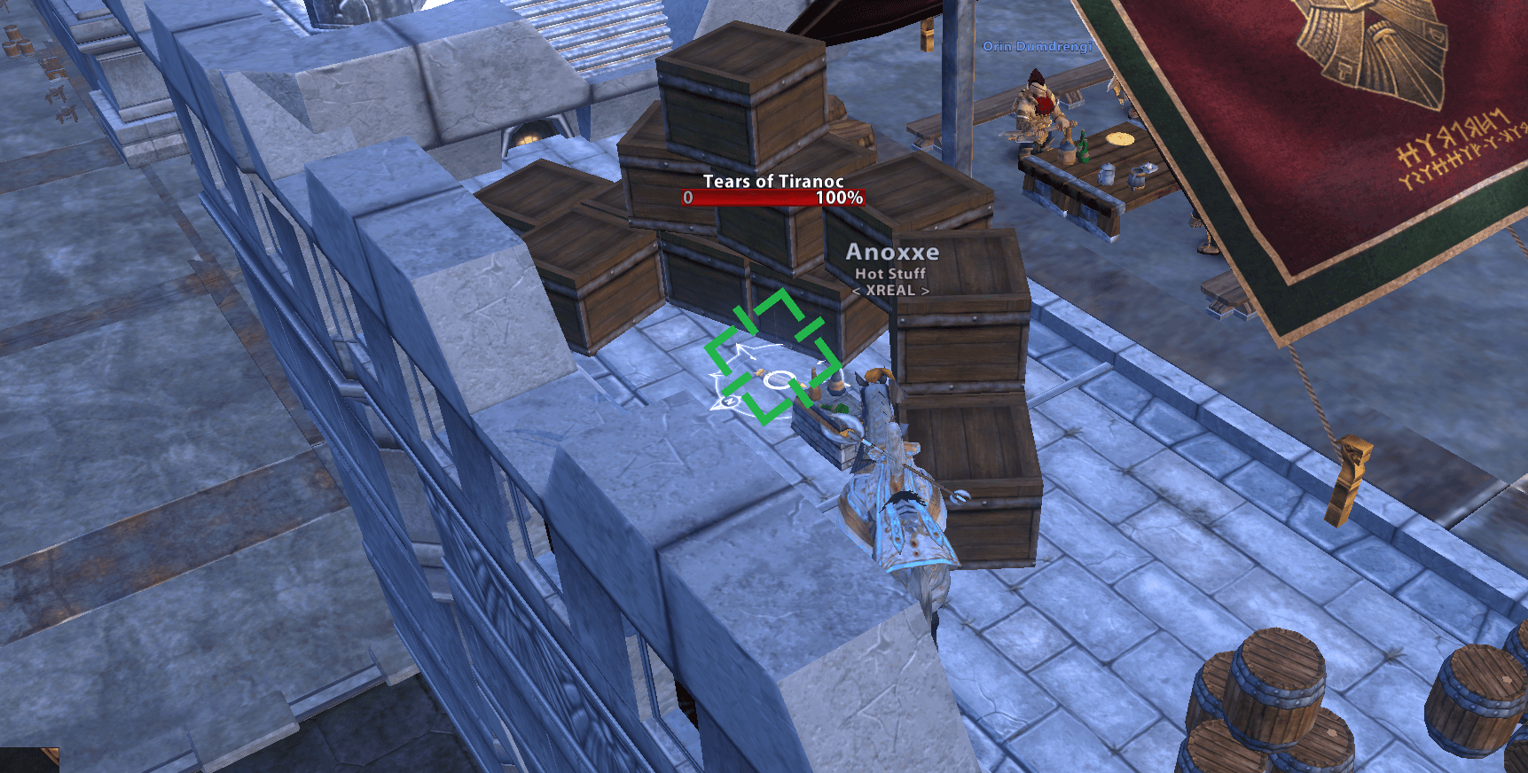 Looking at the tents, go behind them to the right behind some crates and you will find the Scroll called the Tears of Tiranoc. Click this to start the Heart of Stone quest that has multiple stages and you get a mix of stalwart stones, potion of acclaims and the last stage you get 6 Guild Coins