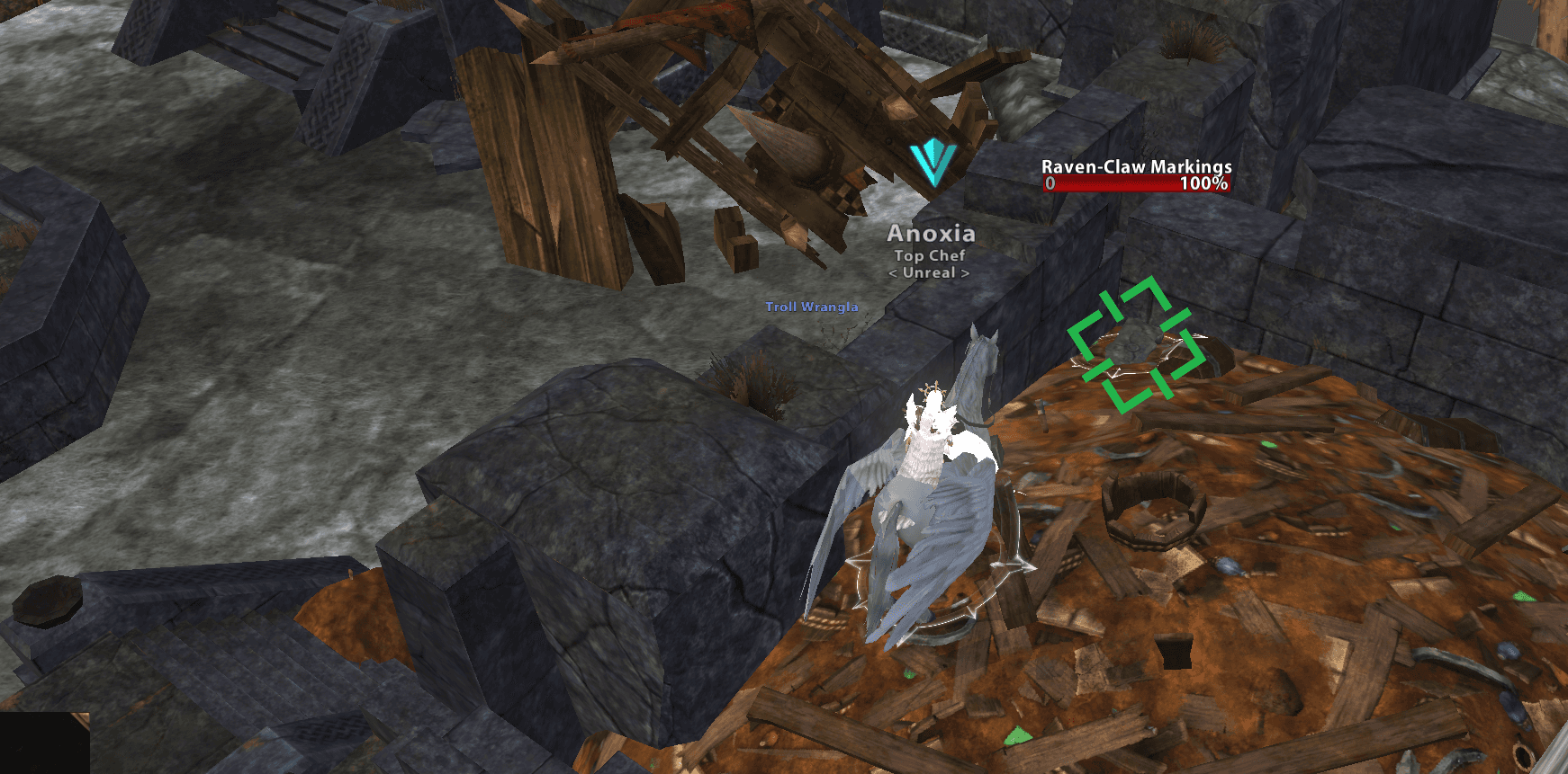 As soon as you come out the portal, look immediately to your right on a rubbish pile and click the stone called Raven-Claw Markings. It can be hard to get onto the pile. Click this to start the Feathers in the Wind quest that has multiple stages and you get a mix of stalwart stones, potion of acclaims and the last stage you get 6 Guild Coins