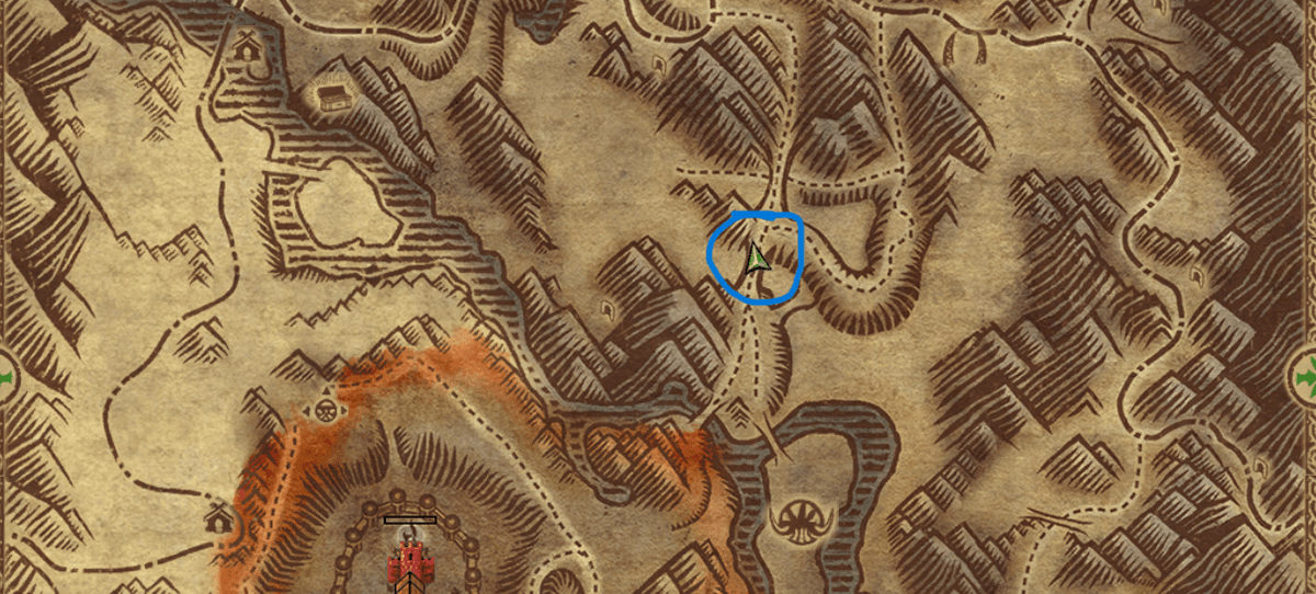 Min Rank 26 | BOP. Find the Dead Savage Orc in the Badlands underneath the bridge. To get there, go to the north side and jump on the rock to the left. Line your character directly with the bridge underneath and fall down to it. You will lose most your health but you should survive the fall.