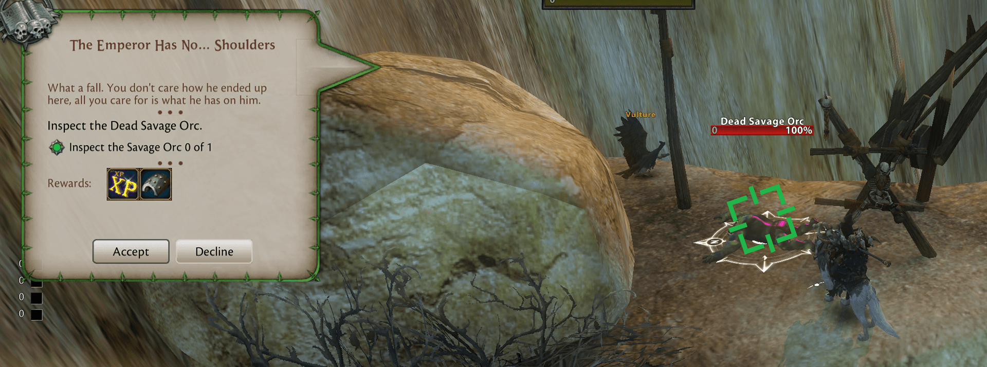Min Rank 26 | BOP. Find the Dead Savage Orc in the Badlands and click to start the quest, then click the corpse again to get the item.