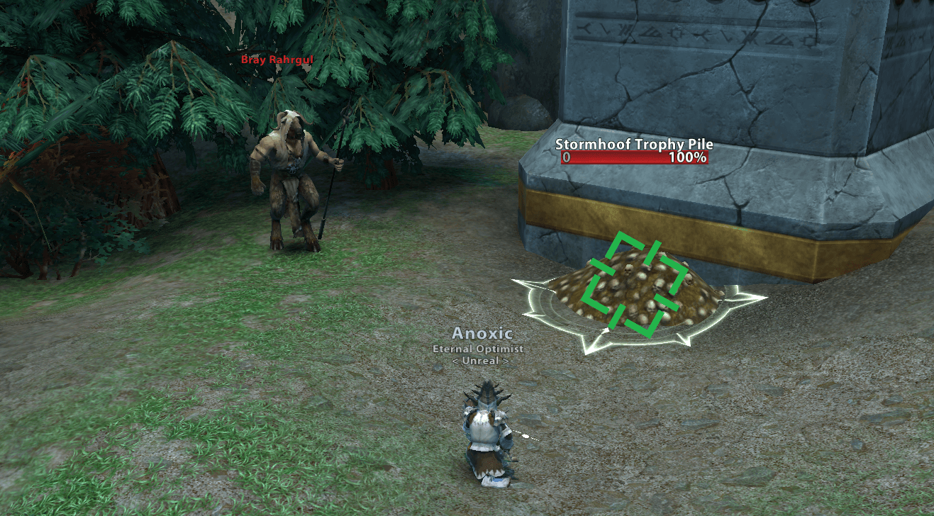 Head back north to first find Kraargh by the fire, kill him then go west and click on the Stormhoof Trophy Pile. When you accept the next quest a hero will spawn so be prepared.