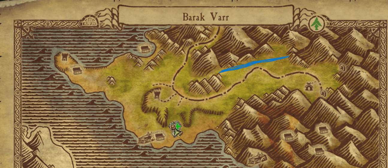 Go to Ostland and head southwest until you reach the bridge, a Champion called Doctor Ebbe will walk from here until the farm south by the lake, his walk path is marked in blue below. Kill him then head to Chapter 9 to hand in to the merchant who sells TBOB2. He will give you the next stage of the quest.