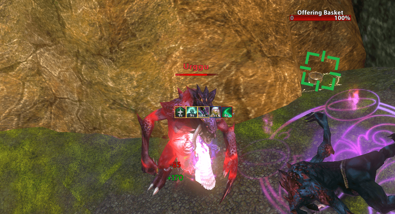Head back northwest to find the Offering Basket. It is slightly up the hill behind a rock. When you click it a hero will spawn so be prepared.